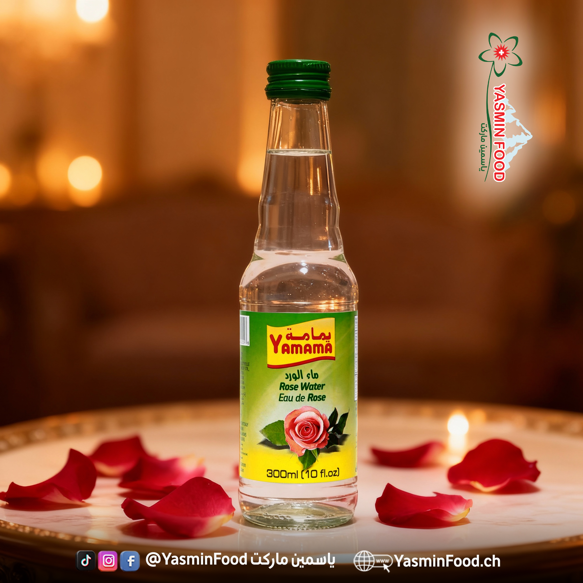 Yamama Rosenwasser 300 ml transparente rosa Farbe und duftender Duft, der ein Gefühl der Entspannung vermittelt, Rosenwasser wird aus Rosen gewonnen und Süßigkeiten zugesetzt, um ihnen einen köstlichen Geschmack und einen angenehmen Geruch zu verleihen, Rosenwasser war in der Vergangenheit für seine medizinischen und kosmetischen Vorteile bekannt, es ist ein nährendes Reinigungsmittel für die Haut und es hat eine hohe Bedeutung bei der Vorbeugung von Keimen und bei der Wundheilung, Rosenwasser wird in einem luftdichten Plastikbehälter aufbewahrt, um eine gute Lagerung und hohe Qualität zu gewährleisten.